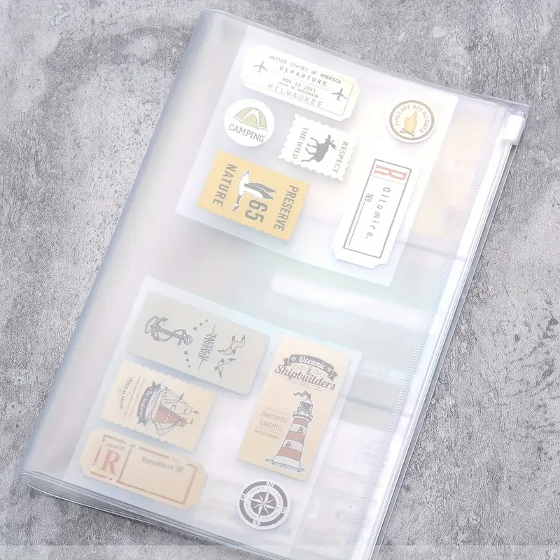 Funda transparente PVC con 6 bolsillos tarjeteros y un compartimento con cierre deslizante para guardar documentos.
